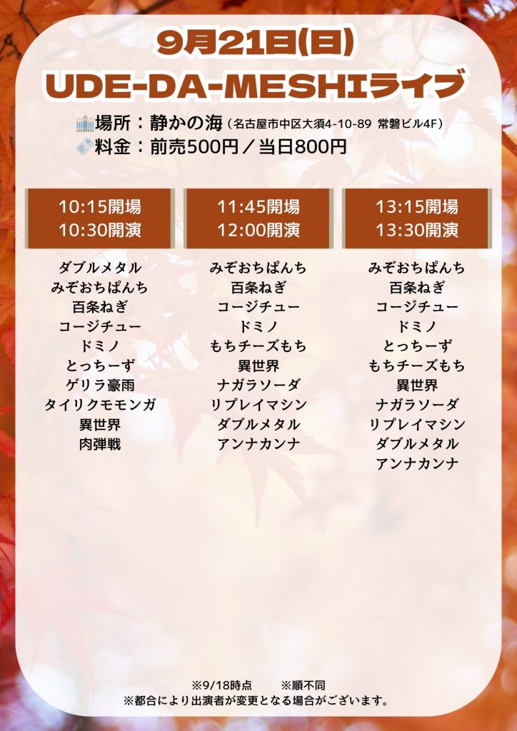UDE-DA-MESHI~漫才・コント・ピン芸・モノマネ・パフォーマンス・なんでもオタメシライブ~