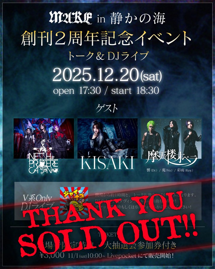 [チケット] 3,000円 ※入場者限定特典・大抽選会参加券付き ※当日ドリンク代600円別途必要 ※再入場可