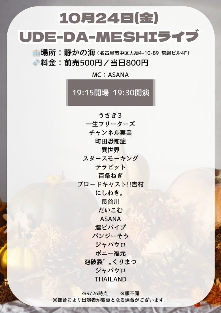 10月24日UDE-DA-MESHI開催決定!!