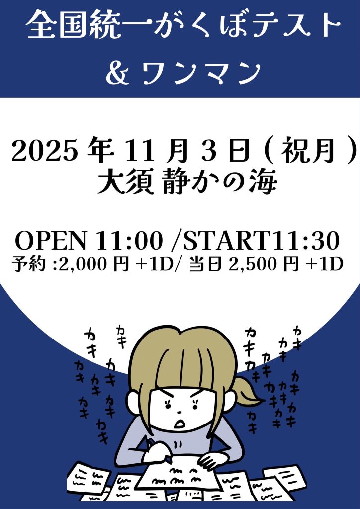 11月3日全国統一 がくぼテスト&ワンマンライブ開催決定!!
