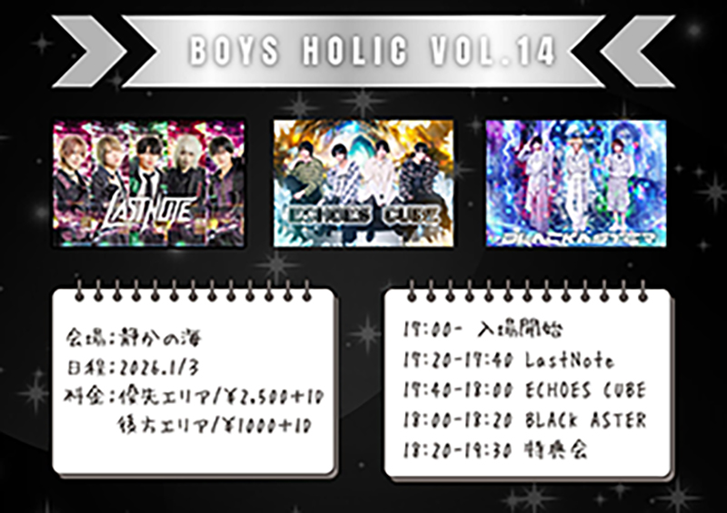 投稿者: kuramoto オン 2025.12.18 2025.12.18 NEWS 1月3日BOYS HOLIC Vol.13 Vol.14開催決定!! BOYS HOLIC Vol.13 BOYS HOLIC Vol.14 2025/12/18