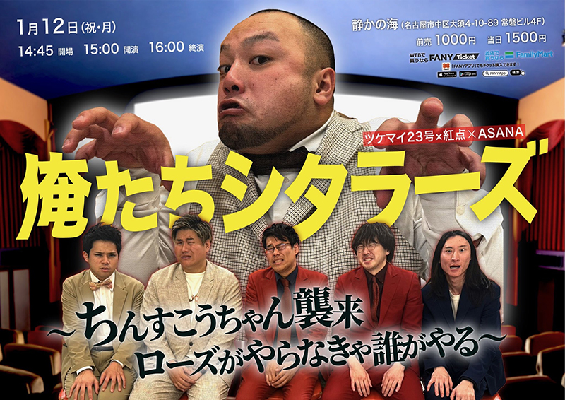 投稿者: kuramoto オン 2026.1.7 2026.1.7 NEWS 1月12日俺たちシタラーズ ちんすこうちゃん襲来 ローズがやらなきゃ誰がやる開催決定!! イベントの詳しい情報はこちら 2026/01/07