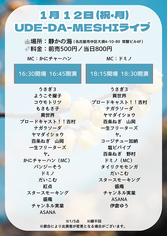 UDE-DA-MESHI~漫才・コント・ピン芸・モノマネ・パフォーマンス・なんでもオタメシライブ~